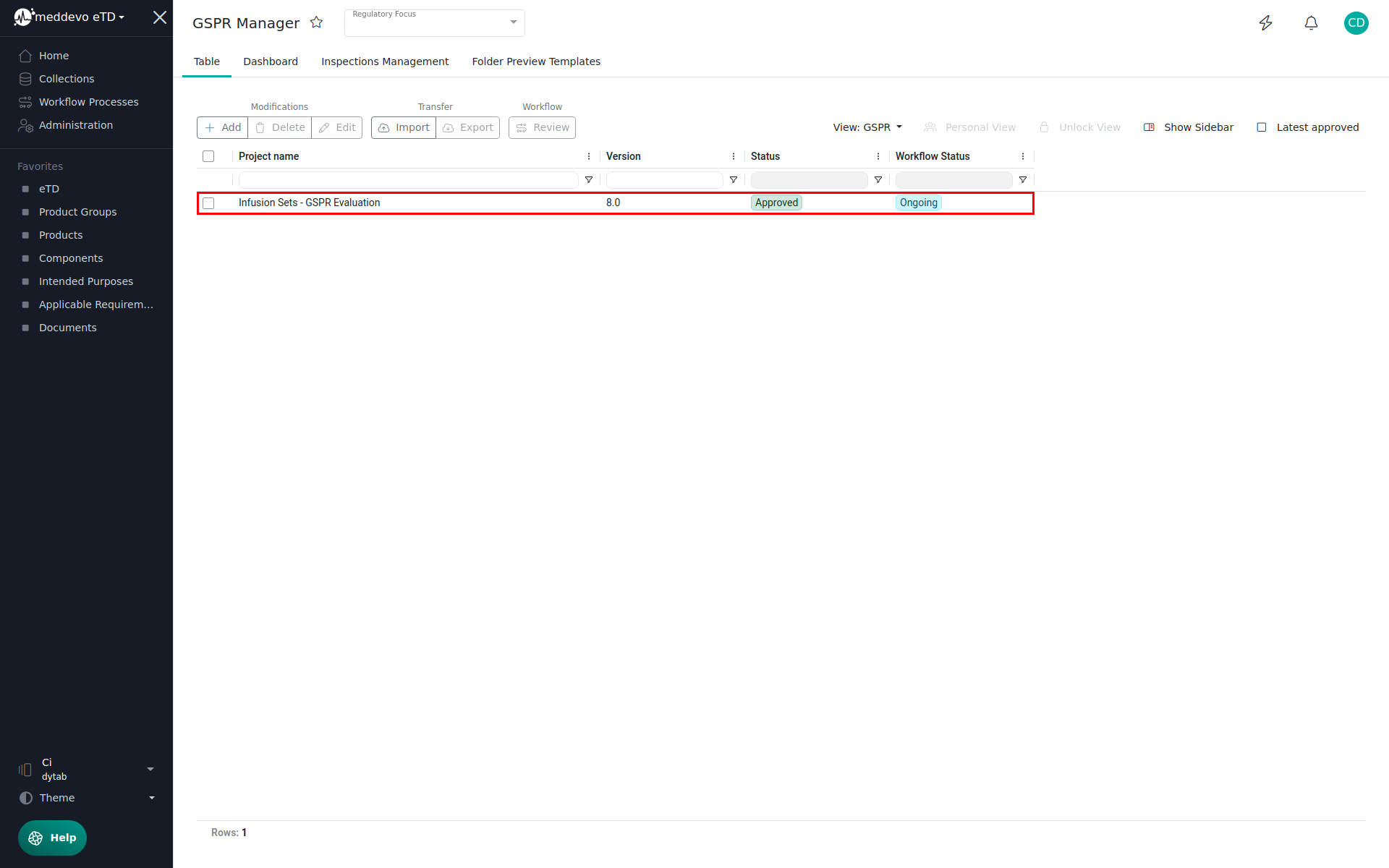 1. Select the GSPR Evaluation Project you want to work on or create a new one by clicking "+ Add".