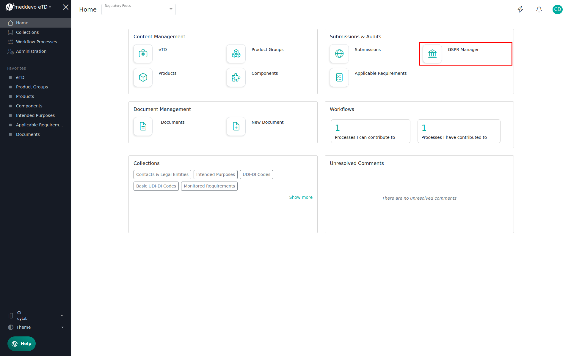 You can find the GSPR Manager in your dashboard, under the Submission & Audits section.