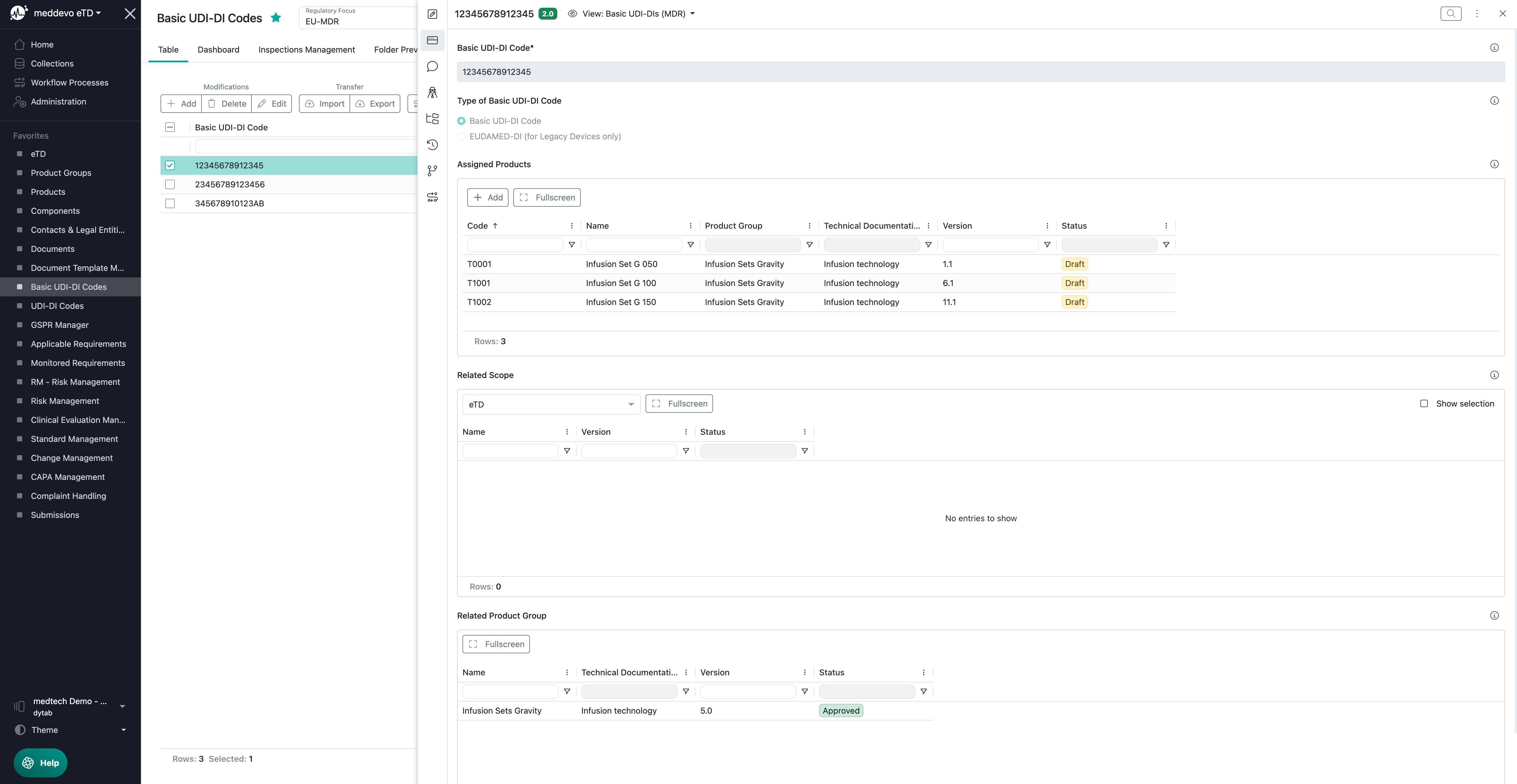 All Basic UDI-DI code relevant regulatory information will be managed in your Products collection: